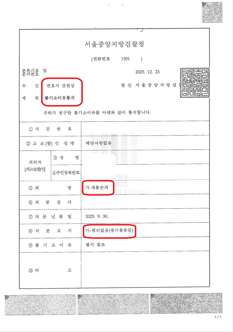 [Successful Case Result] No Indictment for Property Damage in Seoul